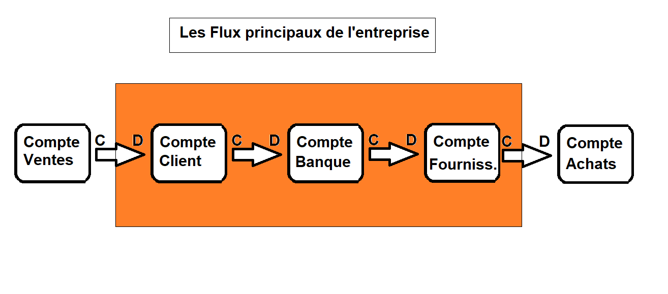 La comptabilité consiste à enregistrer des mouvements de valeurs entre 2 comptes. Le Flux concerne un certain montant