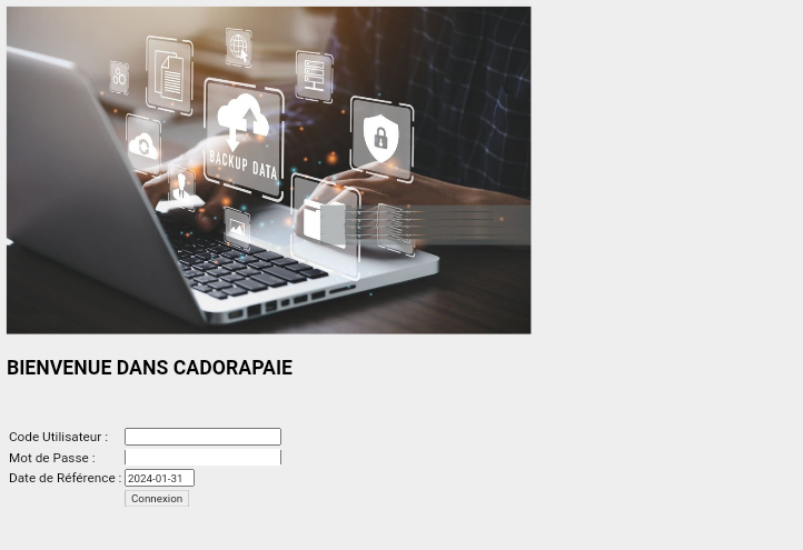 Nous sommes développeur de solutions business dynamiques, site web, comptable-fiscaliste. dans ce site nous exposons nos compétences et nos produits.Notre logiciel pour votre entreprise, il vous faut une solution complète, disponible 24h/24 , compatible Franc CFA, disponible 7j/7, accessible aussi bien du bureau, que de la maison, que - à distance - par un prestataire qualifié en comptabilité, la solution c'est Cadorapaie V 1.0, la solution en ligne est adapté à SYSCOHADA et SYSCEBNL applicable à partir du 1er janvier 2024.